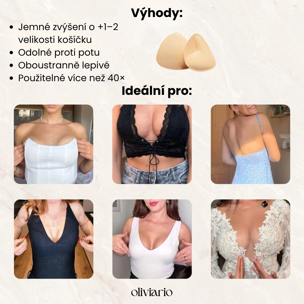 LiftPads jsou ideální pro topy bez zad, topy, šaty, bikiny nebo jen tak do podprsenky.